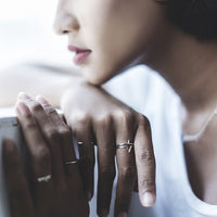 A fine 1mm grain of precious metal on an inverted V band. A great piece to be worn on its own or stacked with Droplet, Cloud rings and others from the LUNA collection.