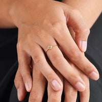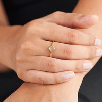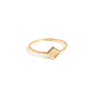 Delicate details make this ring stand out from the crowd. A diamond shape sits on a 1mm square wire ring.  Simple from afar, but up close, a square frame relief sits on the main shape and the inside diamond shape is of a matte finish.  Wear the Rhombus on its own or stack it up with its friends, the Line Ring, Omega, Arc, and many more of our stacking rings!