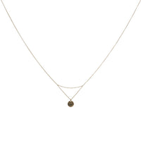 14k gold matahari necklace with hammered disc pendant on fine chain