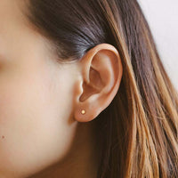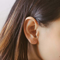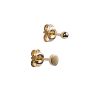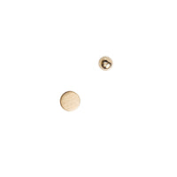 The Tic Tac; a pair of mismatched stud earrings in 14k solid gold. A tiny high polished sphere on one side and on the other, a flat disc with a brushed metal finish. Pairs fabulously when mixed and matched with other earrings as well!